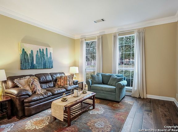 Don't miss out on this 4 bedroom 3 car garage Newmark home in the desired Stonewall Ranch neighborhood. This home has many upgrades, including updated farmhouse style kitchen with gas cooking and double ovens. Enjoy coffee on the patio overlooking the park like backyard which backs to a greenbelt. Lots of storage, Juliet Balconies upstairs, plantation shutters in family room, large walk in master closet, tile and hardwood in main living. Easy commute to I-10, schools, shopping and restaurants.