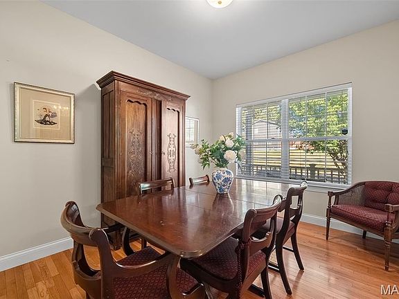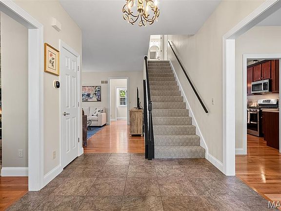 Your hunt for the perfect home is over! Located just minutes from downtown Kirkwood, this 4 bedroom, 2.5 bathroom, 2-story house provides the lifestyle and convenience Kirkwood is known for. Enter from the large covered front porch into a welcoming foyer flanked by a private home office and separate dining room. Living room features a gorgeous half round window and pass through gas fireplace. 1/2 bath and main floor laundry (with custom cabinetry) at the rear of the house. Massive eat-in kitchen perfect for entertaining with breakfast bar, sprawling counter tops, updated cabinets, stainless steel appliances (including recently installed gas range & refrigerator), dry bar and pantry. Up the recently carpeted stairs are 4 huge bedrooms including primary ensuite with double vanities, soaking tub and custom walk in closet, along with full hall bath for guests. Partially finished lower level with built-in dry bar makes for a great recreation room. Out back is a large, recently built deck with both a seating and dining area, along with a detached 2 car garage. Don't wait too long on this home; schedule a showing today! Open House Sunday 10/26 1-3pm!