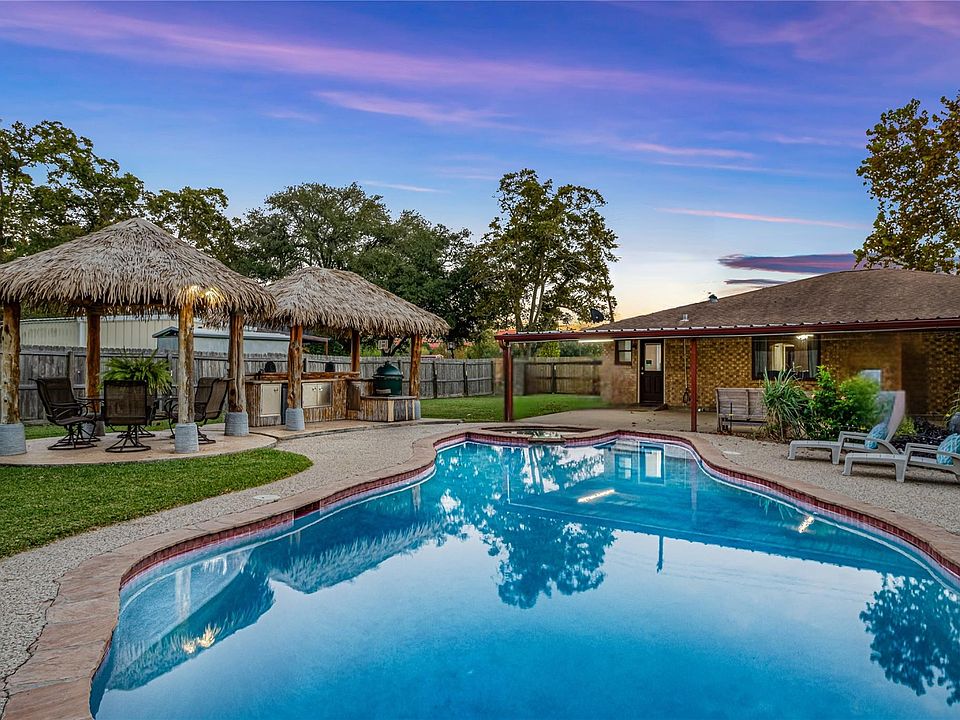 Discover your dream home in Highlands, TX. This impeccably maintained property sits on a peaceful oversized half-acre lot surrounded by mature trees and timeless curb appeal. Step inside to an open-concept layout featuring four spacious bedrooms and two and a half baths, designed for both comfortable family living and effortless entertaining. The kitchen includes an independent ice maker, ideal for hosting and convenience. The home also features a whole-home backup generator and tankless water heater, providing comfort and peace of mind year-round. Outside, enjoy your private backyard oasis with a sparkling pool, lush garden, and expansive covered patio perfect for gatherings. A workshop and versatile Man Cave/She Shed complete this exceptional property. Don’t miss your chance to start the new year in a home that truly has it all.