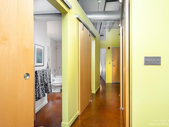 Urban loft living at its best in this stylish 2 bedroom, 2 bath condo in the heart of downtown Ann Arbor. This ideal location offers amazing restaurants, shopping, and all the fun festivals and A2 activities at your fingertips. This sleek, north-facing unit features exposed ductwork, high ceilings, open space, brick walls, and stained concrete floors. The living room with an entire wall of windows walks out to your private terrace that opens to Liberty and offers a large sky view. Contemporary kitchen with stainless steel appliances and granite counters. Large, yet cozy primary suite with ensuite bath featuring dual vanities and shower. A second bedroom and full bath with spa tub is perfect for guests or use as a private study. The building features a secure entry, elevator, updated exerci exercise room, well-lit storage lockers, and a deeded parking space in a covered, heated, secure garage. Enjoy hassle-free living close to everything. True urban oasis. New Water heater and garbage disposal '22. 3 blocks from Central Campus and 2.5 blocks from Downtown Main Street., Primary Bath