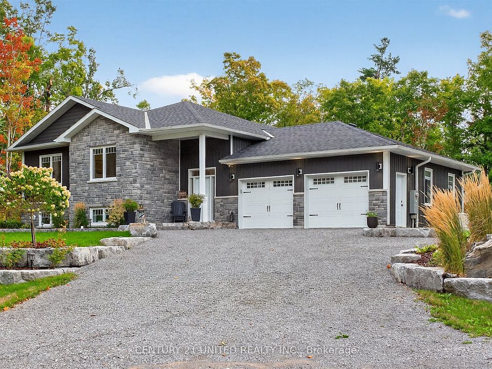 Welcome to 322 Elbow Point Road, a custom-built 2021 raised bungalow situated on just over half an acre in a quiet, tree-lined cul-de-sac in desirable Trent Lakes. Designed for comfort and functionality, this beautifully maintained home offers a bright, open-concept kitchen, dining, and living area-perfect for everyday living and entertaining. The fully finished walkout lower level features a gererously spacious recreation room warmed by a propane fireplace, offering flexible space ideal for extended family, guests, or multi-generational living while maintaining comfort and privacy. Enjoy professionally landscaped front and back yards, a private fenced backyard with hot tub, screened-in sunroom, and deck-perfect for relaxing or hosting family and friends. The oversized, fully finished and insulated two-car garage, Generac backup generator, and ample parking provide comfort, reliability, and space for the whole family and all your cottage-country extras. Located just minutes to schools, shops, and amenities, and a short drive to the Trent-Severn Waterway and nearby locks, this move-in-ready home offers privacy, lifestyle, and convenience in one exceptional package.