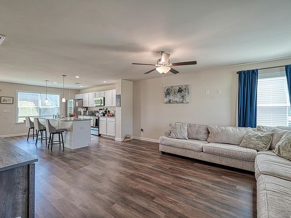 This beautiful two-story home features four bedrooms, two and a half baths, and a large spare flex room, perfect for a home office or playroom. When entering your potential home, you are met with the spacious family room that leads to the kitchen. This modern kitchen has stainless steel appliances, sleek white cabinets, and granite countertops. Moving along through the kitchen dining area, and the half bath. As you go upstairs, you are greeted by the open loft area that provides additional living space, perfect for a cozy reading nook or entertainment area—transitioning into the spacious primary bedroom, which features a walk-in closet and a luxurious bathroom with a walk-in shower, linen closet, and dual raised vanities with granite countertops! The exterior of the home features a covered patio and fenced-in yard! Perfect for cookouts and spending time with friends and family. Don't miss the chance to make this stunning property yours! When buyers utilize our preferred lender, we can offer up to $1000 in closing costs for qualifying buyers. and an additional $1000 for local heroes!