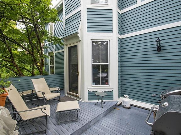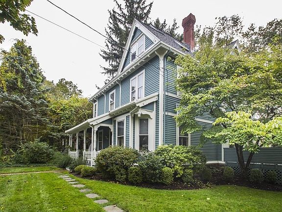 Lovely 1882 Stick-Style Victorian gem. The stunning exterior was repainted in 2014, and a new roof was installed in 2013. The property features a manicured yard adjacent to a paved driveway and two storage sheds, a large foyer, and a delicately carved staircase reminiscent of the period in which the house was built. You'll also find two front parlors, one with a wood burning fireplace with original tile and large built-in wooden cabinets, as well as period details through the house. The sunny living/dining room boasts a large wood burning fireplace and opens to an outdoor deck. The second floor includes three bedrooms and two full baths, including a master bedroom with en suite bath. The third floor has two additional bedrooms, a loft storage area, and one full bath. The finished basement has a separate entrance. The house is minutes from Boston, a block from Farlow Park, and within walking distance to elementary and middle schools.