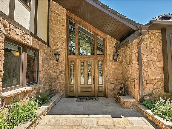 This remarkable home located in the desirable community of Evergreen offers 4 bedrooms, 4 bathrooms, and a generous 3,949 square feet of living space. The attention to detail and quality craftsmanship is evident throughout. Upon entering, you are greeted by a foyer with travertine tile floors and a towering ceiling, setting the tone for the elegance and sophistication found within. The family room is a cozy retreat, featuring a gas fireplace, and mahogany beamed ceiling, creating a warm and inviting atmosphere. The kitchen is a dream, with granite counters, stainless steel appliances, and a gas range oven. The living room area, perfect for entertaining, with gas fireplace adding a touch of ambiance. The bedrooms offer comfort and tranquility, with plush carpet and a second primary bed/bath on the upper level. The in-home office features granite countertops, brick accent wall and custom built in cabinets. Upon entering the primary suite, you'll experience luxury living with angle tray ceilings, marble gas fireplace, access to the wraparound deck, and wet bar to enjoy your morning coffee to help start your morning. Head into the primary bathroom equipped with 2 water closets, an extravagant steam shower, under-lit vanity countertops and an immense closet with custom built-ins. The detached shop/garage is a perfect space for all of your toys, is heated for year-round use, includes built in storage and confirms that this property has left no stone unturned. Step outside to enjoy the breathtaking mountain views from the colossal wraparound deck featuring a new covered area, providing a serene space for enjoyment of the Colorado outdoors. The yard features a greenhouse complete with electric and plumbing, stoned retaining walls and plenty of usable land for activities. The community offers a peaceful and picturesque setting, surrounded by nature and wildlife. Schedule a showing today and experience the beauty and luxury this property has to offer.