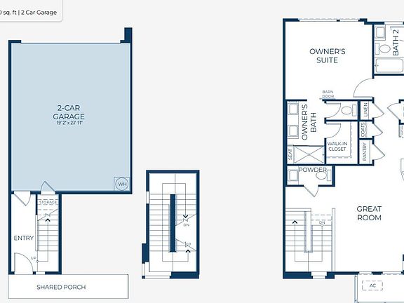 New Construction | 2 Beds | 2.5 Bath | 2 car Garage | 1,400 SQFT - Plan 2 - With approximately 1,400 square feet, Plan 2 offers a functional layout designed for modern living. A shared porch leads to a private entry where upstairs is a centrally located kitchen with easy access to the pantry, coat closet, and linen storage, ensuring effortless organization. The primary suite is a relaxing retreat with a seated shower and a well-appointed walk-in closet. A second bedroom and bath provide additional space, making this home ideal for small families, roommates, or guests. A two-car garage adds convenience to this thoughtfully designed residence. Please Note: Photo depiction is of the model home.