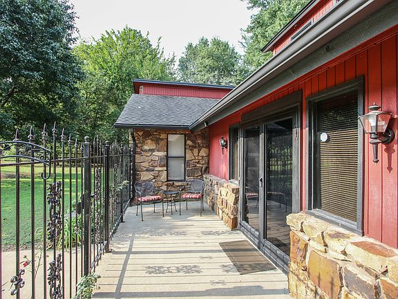 Modern contemporary style home on 1 acre in coveted Spunky Creek addition. Located just down the street from the famous Route 66 Blue Whale. Beautiful lot with mature trees, gated courtyard, upstairs loft for an office or game area over looking large living room. Wood burning fireplace with a gas starter, cooks kitchen with lots of storage. Side entry garage leading into laundry room with half bath and several storage cabinets, Great location minutes from shopping and grocery store.