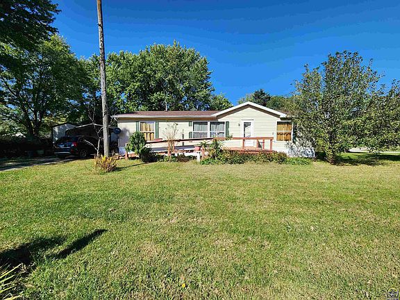 This gem in the small town of Netawaka could be your new home! This 3 bed, 2 bath double-wide manufactured home sits in a 0.3 acre lot. Take pleasure in the established apple, plum, and peach trees along with the many returning varieties of plants in the garden, including mulberries, horseradish, and asparagus. Have a cup of coffee in the morning on the front deck or enjoy the rain outside on the covered back deck. The property includes a master bedroom with walk in closet and attached bathroom and a mainfloor laundry space. In the oversized lot, a 12xz24 storage shed is included, along with a 2 car carport.