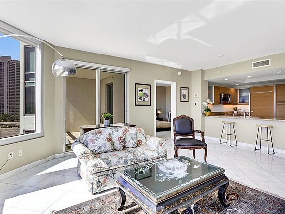 Charming two-bedroom residence offering beautiful views of the Las Vegas Country Club and partial views of the Las Vegas Strip. Both bedrooms and living area offer individual full-depth terraces, large enough for al-fresco dining or sunrise and sunset yoga. Perfectly positioned between the Fontainebleau and Downtown’s Arts District, just steps from world-class casinos, boutique retailers, craft breweries, cocktail lounges, and eclectic dining. Residents enjoy an all-inclusive high-rise lifestyle with resort-style pool and spa, tennis and pickleball courts, putting green, resident lounge, conference room, 24-hour security, and daily coffee service. Owners also receive exclusive discounts at neighboring casinos and Main Street favorites.