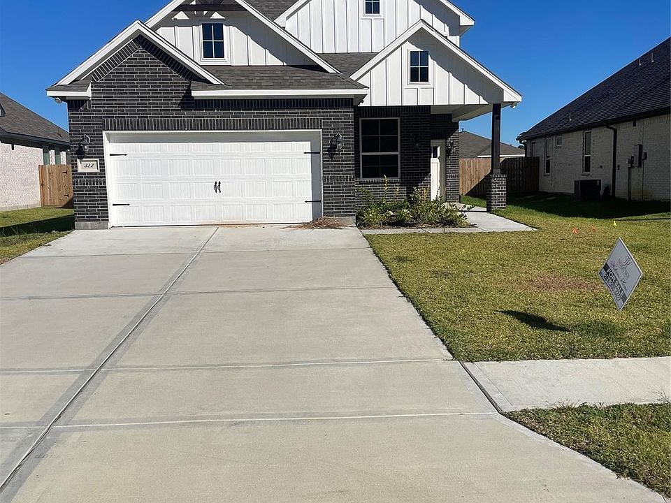Beautiful new construction by Thomas Kade Homes in Cypress Point, Anahuac, TX! This 2-story home offers 5 bedrooms, 2.5 baths, & a 2-car garage. Features include neutral colors, wood-like tile flooring, carpet in bedrooms & upstairs, high ceilings, ample windows, custom cabinets, crown molding, & black fixtures. The open-concept kitchen boasts custom white cabinets, granite countertops, stainless steel appliances, a wall oven, countertop stove, and a breakfast bar. Kitchen opens to a spacious living and dining area with lots of natural light. The primary suite offers a gorgeous bath, walk in shower and soaking tub, with dual sinks and a large walk-in closet. Upstairs features a roomy game area and three bedrooms. Enjoy the covered front porch, large back patio, and spacious yard—perfect for relaxing or entertaining. Easy access to I-10 for a quick commute. Great schools, located in the center commute to Houston and Beaumont. Call for your private showing today.