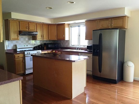 Amazing opportunity to rent 1997 Colonial with private yard. Sept 2015 Hardwood flooring throughout first floor, painted first floor/lower level and in basement installed ceramic tile flooring and bath. Dec. 2015 installed water heater. Formal living room with fireplace, formal dining room, 27' kitchen with island has granite countertops, gas stove/oven, dishwasher & refrigerator. Private deck off kitchen. Master Bedroom with private bathroom plus 3 additional bedrooms and full bathroom. Laundry on second level. Walk-out lower level is partially finished with full bathroom. Two car garage under. Adjacent to Harrington School. Absolutely no pets and no smokers.
