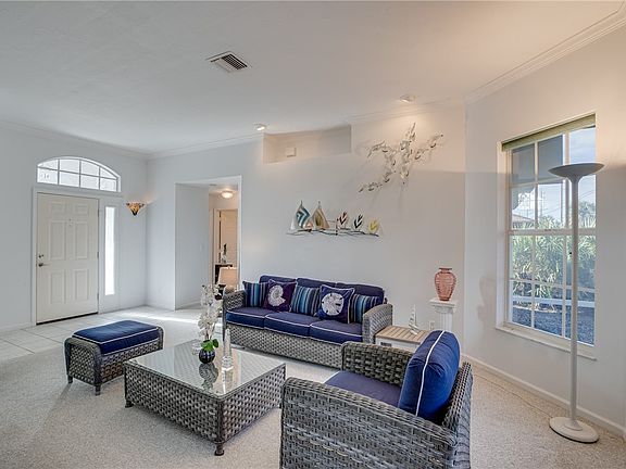 PERFECT LOCATION & WELL-MAINTAINED 3 bedrooms, 2 bath, 2 car-garage, single family home! Peeks of the golf course & parachuters across the canal. NEW ROOF, water heater, & refrigerator! Open floor plan with spacious family room, for easy entertaining! 0.7 of a mile away from Hardee Park. Information is deemed to be reliable but is not guaranteed buyer must verify. Room sizes approx.