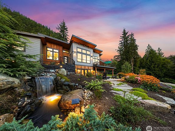 WOW this PNW south Bellingham dream custom home & property is now available. Magical 12+ acre estate W/a custom modern home has been creatively designed for recreation like no other.The installed active lighted water features, Koi pond with LED lit fountain,custom lit monolith Chuckanut sandstone"grotto"W/fire pits, nine campsites, powered RV sites,covered patios,fully lit beach volleyball ct,trails and more.The newer custom-built SW-facing home is flooded W/light.Floor plan features open concept main floor living,primary ensuite,office /den,& custom decking.Downstairs to the rec room W/wet bar & four more spacious bedrooms, & access to front patio fire pit next to the waterfalls. All this minutes from Lake Samish,Fairhaven and the freeway.