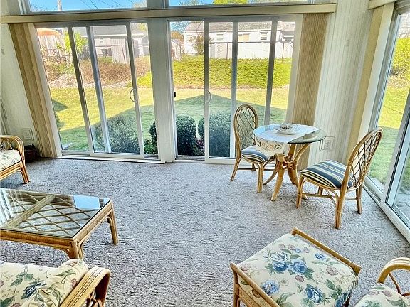 Enter the home into the sprawling living room then step into the heart of the home...the updated eat in kitchen has newer appliances and a nice size island. The highlight of this property is the stunning all-glass sunroom, where you can bask in natural light and enjoy views of the outdoors.