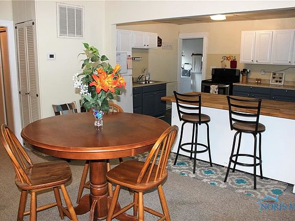Great starter or investment home! Relax on the porch or in the privacy of the sizeable backyard. Kitchen updates include : wall removed to create open feeling, added butcher block countertop, cabinets painted & new vinyl flooring. Bathroom has updated vanity cabinet and toilet. Updated 2022 - DR ceiling & crown molding, painting & backdoor steps. 2019-C/A, Windows & Electric box. 2018-Furnace. 2017-Water heater. Electric Avg - $48/m, Gas Avg- $30-50/m in summer and $100-$120/m in winter. Curtains in larger BR don't stay. *Auditor sqft did not include laundry room