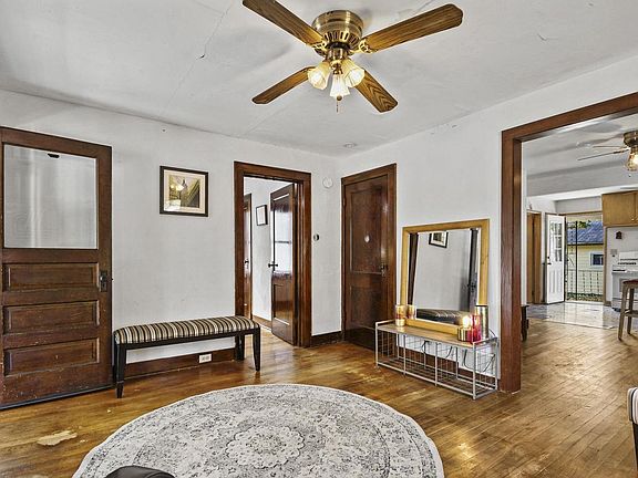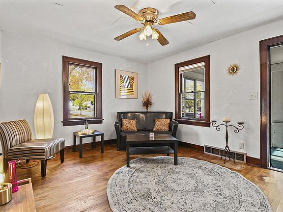Show 10/23. Affordable bungalow with all the character priced below the assessment! Breezy front porch is a delightful spot to start the day by enjoying a beverage and watching the sun come up. It welcomes you into the main floor with wood floors, except in kitchen & bath, along with beautiful woodwork. Kitchen has breakfast bar open to dining area which is off the living room. Main floor bedrooms accessed from different ends of the home giving more privacy. Upstairs has third bedroom(needs flooring) plus loft area that makes for a nice den/office both offer storage space in knee walls of the angled ceiling. Decent yard to enjoy the afternoon sunshine which goes out to the handy garage w/storage. Home needs some cosmetic updates. Convenient location where you can walk to much incl. schools