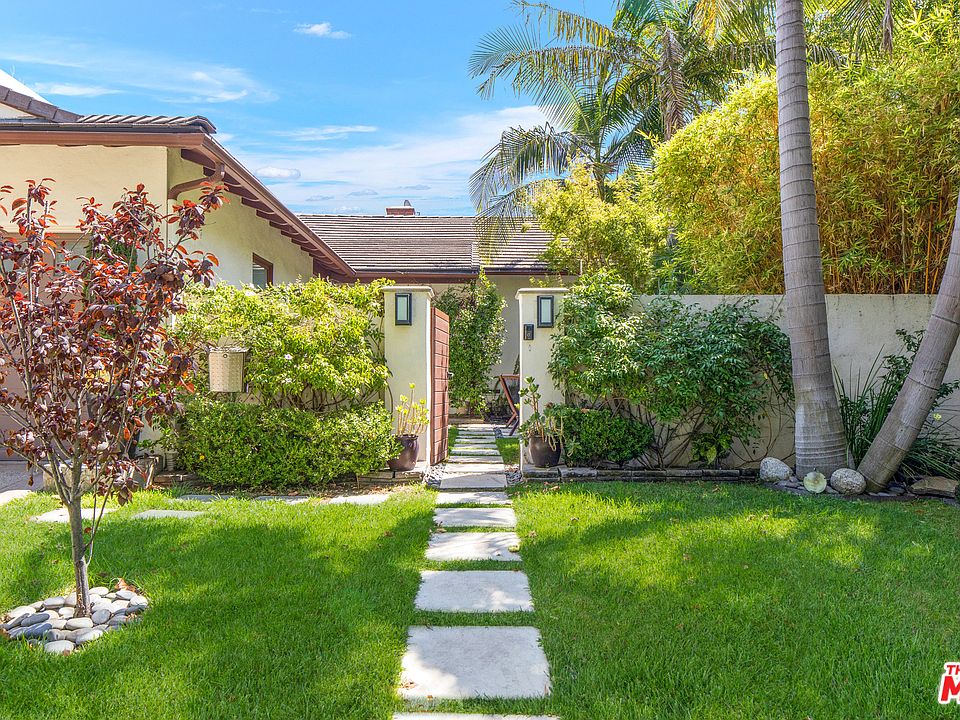 Contemporary urban retreat in the highly coveted area of Beverly Grove. A gated, lush courtyard welcomes you into this elegant single-level home that combines traditional architecture with warm, natural design elements. A stacked stone fireplace is the perfect centerpiece to the living room, which features an oversized window that bring the outdoors in, creating a bright and inviting energy in the space. The kitchen features modern wood cabinetry, stainless steel appliances, center island, garden window, and breakfast area. The master bedroom has a gorgeous custom built-in closet, and French doors opening to the tranquil private backyard with multiple seating areas, fire pit, and covered patio. Additional features include a two-car garage, central A/C controlled by Nest thermostat, hardwood floors, and laundry room. Conveniently located just minutes to The Grove, Melrose Ave, local dining & shopping hotspots, and more.