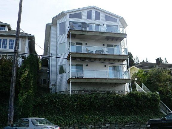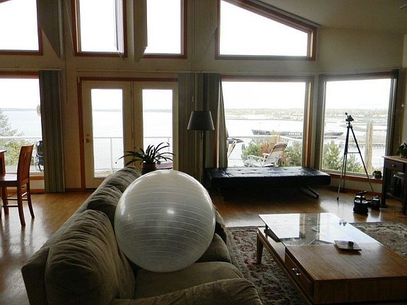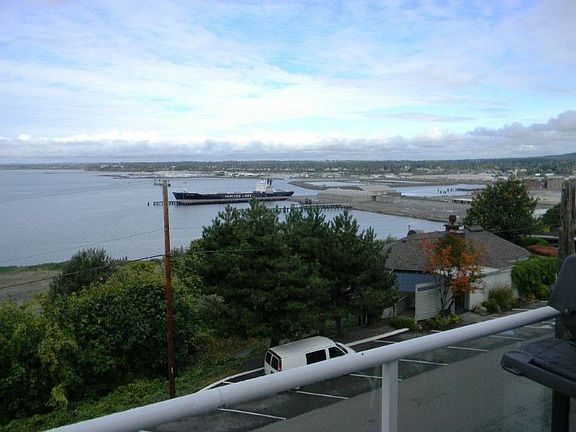 Immaculate, spacious, penthouse view condo on Bellingham's Southside. Impeccably remodeled with custom touches and an open floor plan. Three bedrooms, two baths plus an office. The Great Room features cherry built-ins, a curved custom concrete hearth, 12 foot mantle from reclaimed fir, soaring cathedral ceilings and a wall of windows to highlight the fabulous views. The kitchen has it all. Granite counters, stainless appliances, peninsula countertop with seating for three, a pot filler and a to die for pantry/prep area complete with granite, stainless and window with a view. The master bath has quartz counters, soaking tub, walk-in shower, built-ins and two windows for natural light. The two other bedrooms are very good size and all three bedrooms feature walk-in closets. There is a second full bath and laundry room with full size washer and dryer. The office has an abundance of built-ins and privacy to get some work done. It does have a window. The home has all new flooring. The living areas are sustainable bamboo, the kitchen and baths are ceramic tile and the bedrooms are carpeted. In 2015 a new metal roof was put on as well as new siding and paint for the entire building and new stone accents.
