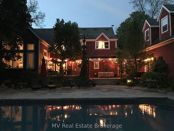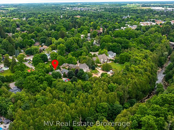 Discover one of Elora's best-kept secrets - an exclusive street with only six homes, tucked away in a quiet and private setting, yet just minutes to downtown. This exceptional property with mature trees and a forest at the rear offers a rare blend of space, character, and natural beauty, set on over an acre overlooking the river gorge. The completely fenced backyard is ideal for children and pets, with an in-ground pool, courtyard, stone wall, and numerous private sitting areas to enjoy.The large 4-bedroom home has evolved beautifully over time - carefully renovated and expanded creating multiple living areas to suit todays lifestyle. Highlights include a great room with soaring 18' ceilings and a wood-burning fireplace, gorgeous wide soft pine plank flooring, and a family room with gas fireplace that could easily convert to a main-floor bedroom with ensuite potential. A one-bedroom in-law suite offers flexibility for extended family or guests.Outdoors, a detached 20' x 40' barn sits at the rear of the property, perfect for storage, hobbies, or workshop space. The 4-car garage with 12' ceilings and driveway parking for 15 ensures plenty of room for vehicles and toys.Families will appreciate the proximity to highly regarded Salem Public School - a key reason the current owners chose this location years ago. This is more than a home - it's a lifestyle, offering privacy, natural beauty, and the warmth of a unique residence in one of Elora's most desirable and little-known settings.