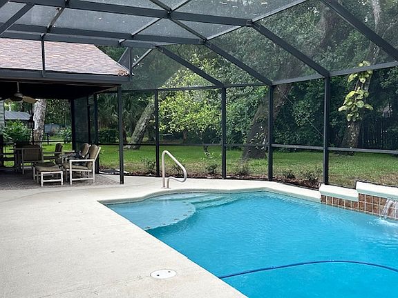 This fully furnished home is ready for a renter. Community has amenities that include pools, tennis, and playgrounds and is reflective of the "Old Florida" natural habitat. The home has three bedrooms and two baths with split bedroom floor plan. It also features a living room, wet bar, kitchen with keeping room, dining room, two car garage and indoor laundry. The charming indoor spaces are warm and inviting. The lovely outdoor patio with pool and screen enclosure are perfect for relaxing, and are very private.