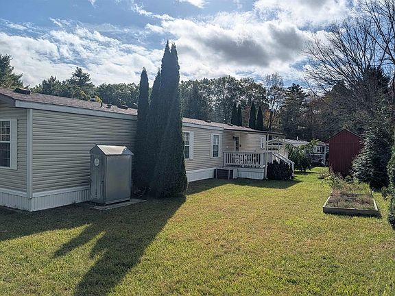 Welcome to an ideal location within the park, the location provides you a nice lot with garden area, don't miss your chance to own this picture perfect home that absolutely must be seen. High ceilings throughout give this home an open, airy feel. The living room is light and bright and opens nicely into the dining area. Kitchen is tastefully done with back splash and ample cabinets with all appliances. Primary bedroom with updated bath and tons of closet space. Guest bedroom, another full bath and laundry complete the interior. A shed, covered deck area, carport can be found on the exterior of the home. This home also has central air, and generator hook-up. Truly a unique opportunity in a sought after 55+community. Buyer must purchase 25k park share. HOA includes snow and trash removal, basic cable, water, sewer.