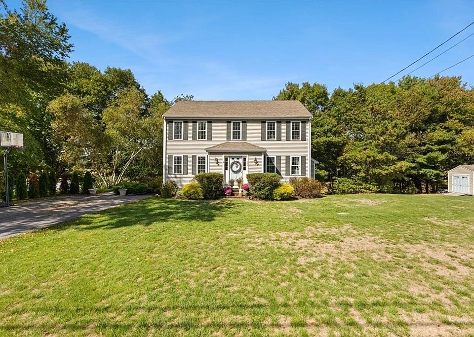 *** OFFER DEADLINE Mon 10/6 at 6pm*** Welcome home to this stunning 3-bedroom, 2.5-bath Colonial set on nearly 2 acres of natural beauty. Out back, you’ll enjoy the ever-changing scenery of the cranberry bogs and some of the most gorgeous sunsets you’ll ever see. Inside, the updated kitchen shines with quartz countertops, a large center island, and plenty of room to gather. The first-floor half bath was recently refreshed, while hardwood floors throughout the main level and a cozy gas fireplace in the living room make the home warm and inviting. Upstairs, the primary suite offers a cathedral ceiling, walk-in closet, and a full bathroom, providing a peaceful retreat. Two additional bedrooms and another full bath complete the second floor. Outside, a vinyl fence installed just a few years ago frames the yard beautifully. This home combines modern updates with serene surroundings, making it an exceptional opportunity. Don’t miss the chance to call this property home!