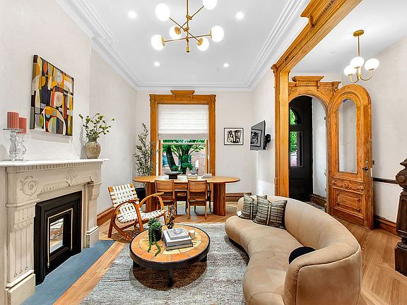 This exquisitely renovated two-family townhouse in the heart of Bedford-Stuyvesant was restored by Townhouse Therapy, whose mission is to let each home speak through its natural proportions, light, and character. With an obsessive commitment to preservation, every original detail-marble mantels, intricate woodwork, historic flooring, and more-has been repurposed and enhanced. Not a single element of the home's character was allowed to go to waste, ensuring its historic soul remains intact while harmonizing with modern living.