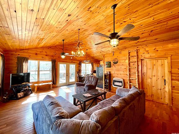 FULLY FURNISHED 2 bedroom/1 bath CABIN on the Banks of the WHITE RIVER! This rustic home features an open floor plan with vaulted ceilings and large windows with a great view of the water! Outside the cabin is a large back deck and a patio/firepit area! There is a private boat launch near the property! This property is secluded and would make a fantastic weekend getaway! Located a short drive to Mountain View, which offers many attractions and activities for the family!