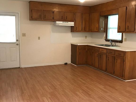 3 bedroom home with large kitchen and dining combo, open to living room, range and refrigerator, central heat and air, laundry room, extra storage, l bath with tub/shower combo, large vanity, replacement windows, heat pump and central air, carport, new flooring throughout and freshly painted.