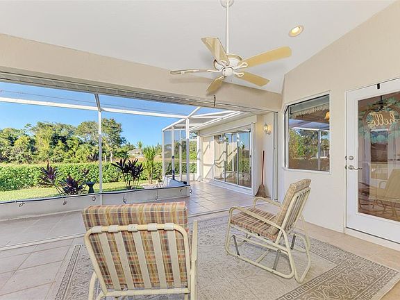 WARM MINERAL SPRINGS BEAUTY! This exceptional 3-bedroom, 2-bath, 2-car garage home in peaceful Warm Mineral Springs is truly a showpiece of quality and care. With its impressive pillared double-door entry, beautiful landscaping, and a sidewalk that wraps around the property, this residence blends elegance with comfort from the moment you arrive. A new roof (2022) adds lasting value and peace of mind, while accordion hurricane shutters provide full protection for every window and door. Step inside and feel the bright, airy flow of the 1,808 sq. ft. split floor plan, filled with thoughtful upgrades. A sparkling Murano crystal chandelier greets you in the foyer, setting the tone for the formal living and dining rooms that feature crown molding, volume ceilings, and sliding glass doors leading to the lanai. The arched entryway to the kitchen adds architectural charm, while the kitchen itself is a chef’s delight—complete with solid-surface countertops, recessed lighting, a new dishwasher (2023), center island, lazy Susan, and a reverse osmosis purification system under the sink. Enjoy breakfast by the Aquarium glass window dinette, where sunlight pours in and a door opens to your covered lanai. The family room is the perfect gathering space, highlighted by an eye-catching octagon double tray ceiling and sliding doors to the tiled patio. The master suite impresses with its 21-foot length, tray ceiling, French doors, and two walk-in closets. The ensuite bath offers dual sinks, a walk-in shower with grab bars, and ceramic tile flooring. Additional features include a new hot water heater (Aug 2024), indoor laundry room with washer, dryer, and built-in sink, and laminate wood flooring throughout most of the home. The expanded screened lanai wraps around the back, creating a perfect space to relax, grill, or garden, complete with a drip system for plants. Extras abound—intercom and security systems, Rain Bird irrigation, Culligan water softener and chlorinator, 240-volt garage outlet, and garage screen doors. All just minutes from Wellen Park, Atlanta Braves’ stadium, shopping, dining, and the white-sand Gulf beaches only 20 minutes away. Experience true pride of ownership in this Warm Mineral Springs gem—a home that combines timeless beauty, comfort, and convenience in one incredible package.