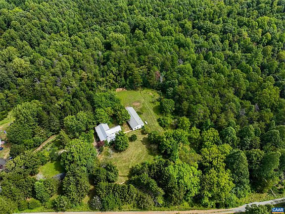 Nestled on 9+ private acres in Ruckersville, this charming farmhouse, built in 1890, offers a serene escape just minutes from town. Nature enthusiasts will revel in the wooded property's trails and bubbling stream. The interior boasts the character of heart of pine and hardwood floors, lovingly maintained throughout. A versatile flex room, perfect for a home office or playroom, welcomes you. The formal dining room, adorned with a modern farmhouse light fixture and wood stove, leads to a light-filled living room with a newly painted accent wall. The farmhouse kitchen, updated with quartz countertops, painted cabinets, and stainless steel appliances, offers a delightful breakfast bar. A renovated main-level bathroom features all new hardware and LVT flooring. Ascending to the upper level, the primary bedroom beckons with a private balcony and built-in closets. Three additional bedrooms showcase hardwood floors. The renovated full bathroom features a tub/shower combo with new surround and a vanity with an engineered stone top. A detached ADU and new 10’ x 20’ storage shed, provide ample space for expansion and creative pursuits.