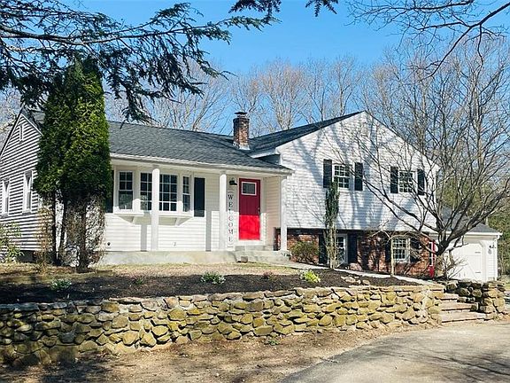 A whole "peace and privacy" vibe is happening at this newly renovated, oversized split level home. The property is over 1.5 acres of serenity outlined with mature trees. The circle driveway commands a stately presence. The main level offers 3 bedrooms and one full and beautifully done bathroom. The kitchen is the center place of the home boasting a jumbo island, brand new cabinetry, gorgeous quarts countertops; with a 240-degree view of the property, all new stainless-steel appliances and modern hardware, you and yours will love to gather here. The kitchen and living area now one large open concept. The interior walls are a muted neutral with rich hardwood floors running throughout. the lower level offers a potential 4th bedroom or office, playroom, gym space, teen cave, man cave, workshop. You'll enjoy a second full bath, also beautifully done, separate laundry room, large living area with walkout to backyard and garage access. Plenty of space to add second kitchen and make in-law. The home has your summers covered with an in-ground pool and newly pointed stone patio. a little green thumbing could turn this landscape into a dream. Please note seller has contracted septic company to install brand new septic system prior to close. Home previously had cesspool. Roof is brand new. Super convenient location for Centre of New England Shopping, public parks, restaurants and Tiogue Lake. Make time to walk through this home, your family will love you for it.