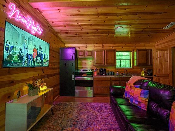 Neon Nights is a stylish and cozy 1-bedroom cabin perfectly tucked away in the heart of Hochatown, offering the ideal mix of comfort, romance, and modern luxury. Designed for couples or solo travelers looking to unwind, this cabin blends rustic charm with vibrant, contemporary touches—hence its name.