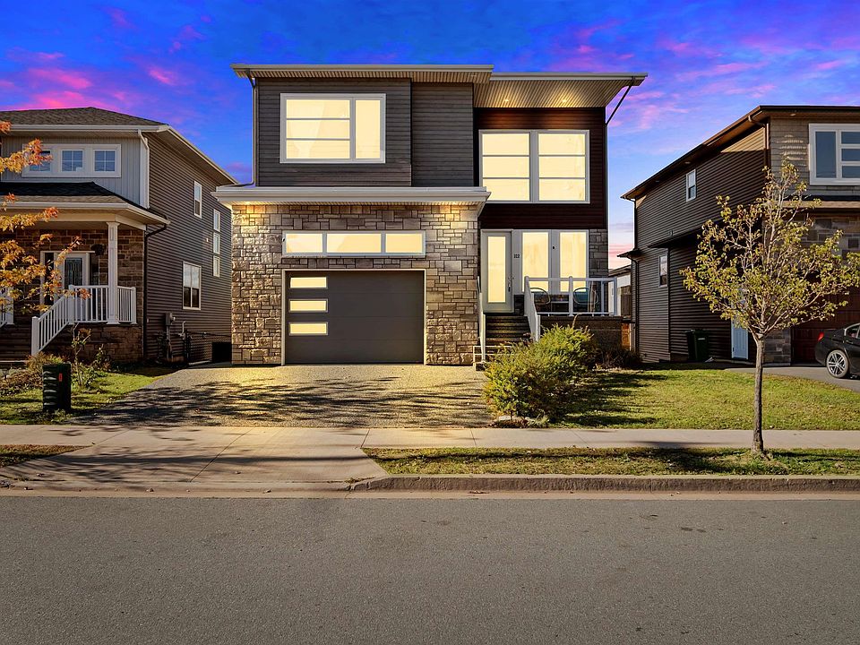 Welcome to 322 Transom Drive, a stunning 5-bedroom, 3.5-bath executive home offering over 3,800 sq. ft. of meticulously crafted living space in one of Halifax’s most desirable neighbourhoods. Perfectly blending modern design, timeless comfort, and functionality, this luxurious home showcases exceptional craftsmanship and refined sophistication throughout. Step into the grand two-storey foyer, where 18-foot ceilings and abundant natural light create an unforgettable first impression. The open-concept main level features 9-foot ceilings and a seamless flow between the living, dining, and kitchen areas — ideal for everyday living and elegant entertaining. At the heart of the home lies a chef-inspired custom designed kitchen with floor-to-ceiling custom cabinetry, quartz countertops with double waterfall edges, a large centre island, walk-in pantry, and premium stainless-steel appliances, including a gas range. The adjoining dining area and family room, complete with a cozy natural gas fireplace and three soaring windows open onto an expansive back deck, perfect for outdoor gatherings overlooking the landscaped yard. Upstairs, the primary suite is a true retreat, featuring a spa-inspired ensuite with a freestanding soaker tub, custom tiled shower, double vanity, and both a walk-through closet and an additional step-down walk-in closet. Two additional spacious bedrooms, a main bath with quartz countertops, and a convenient upper-level laundry room complete this level. The fully finished walk-out lower level offers two more bedrooms, a large recreation room, and a full bathroom, ideal for guests, a home gym, or a media space. Year-round comfort is ensured with a fully ducted natural gas heat pump system for efficient heating and cooling. Located just minutes from top-rated schools, parks, Larry Uteck shopping plazas, restaurants, and walking trails, this home offers the ultimate blend of elegance, comfort, and convenience in one of Halifax’s most sought-after communities.