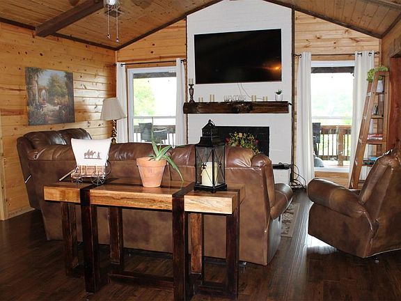 Totally remodeled, nicely appointed lake house with room for everyone. Huge yard, new boat house with composite decking, remote boat and PWC lifts and covered seating area. Rustic interior with many custom features. Vaulted ceilings, cedar beams, main living area and master upstairs and more bedrooms and additional living area down. Amazing upper deck withgas fire pit, downstairs has covered porch and hot tub. Beautiful landscaping. Acitive vacation rental property, set up to sleep 15. Great water location for swimming, paddle boarding and family fun in large cove just off of open water. Home being sold fully furnished and turn-key. No Watercraft included.