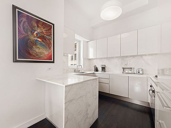 Welcome to the Lofts at the Sheffield Condominium, this rare and unique designer residence is one of the few in the building that feature soaring 11-foot ceilings. The impressive 12-foot entrance gallery leads you into a captivating double-wide living room, with sunny southern and western exposures, and views over the historic English gardens of the neighboring Parc Vendome. Highlighting the vast and airy feel of the space is overhead cove and recessed lighting. The windowed, open-concept, marble kitchen features premium grade appliances and dining bar, perfect for entertaining.