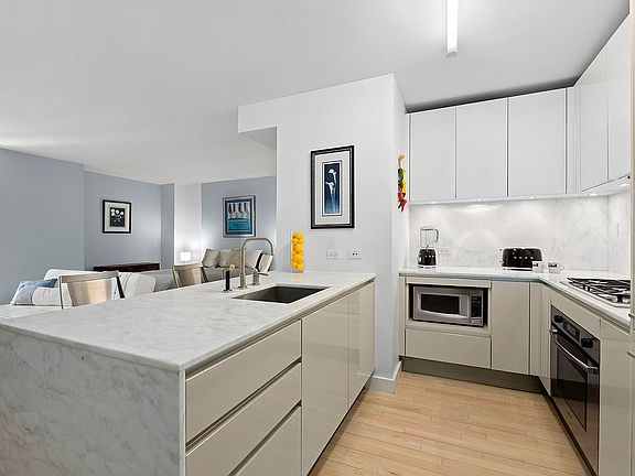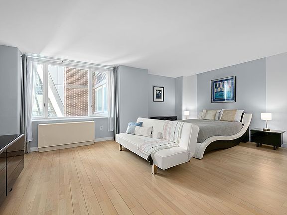 Welcome to 322 West 57th Street, Apartment 25K at The Sheffield. This luxurious studio apartment offers a versatile layout designed for comfort and style. The chef's kitchen features top-tier appliances, including a Liebherr refrigerator, Miele dishwasher, Bosch cooktop and oven, and a built-in microwave, all enhanced by Poliform cabinets and marble countertops. The grand Calcutta marble island is perfect for meal prep and entertaining. .