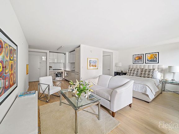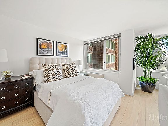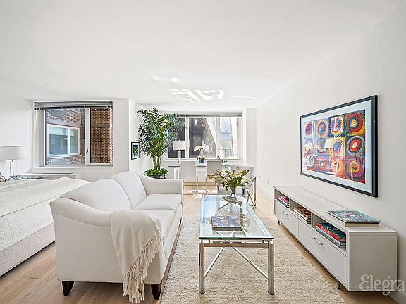 The open kitchen is a true highlight, outfitted with refined Italian cabinetry and a full suite of premium stainless-steel appliances, including a Liebherr refrigerator, Miele dishwasher, and Bosch stove. Granite countertops add an additional layer of style and functionality. With three fully outfitted closets, the home offers generous storage space. The beautiful marble bathroom, light wood floors, and clean modern finishes throughout enhance the home’s tranquil, contemporary feel. Low monthly carrying costs further increase the appeal of this inviting Manhattan residence.