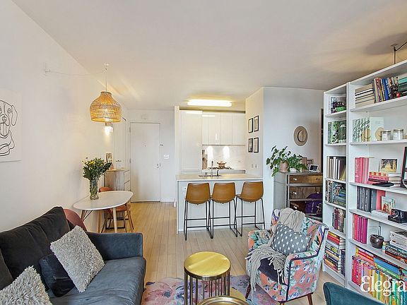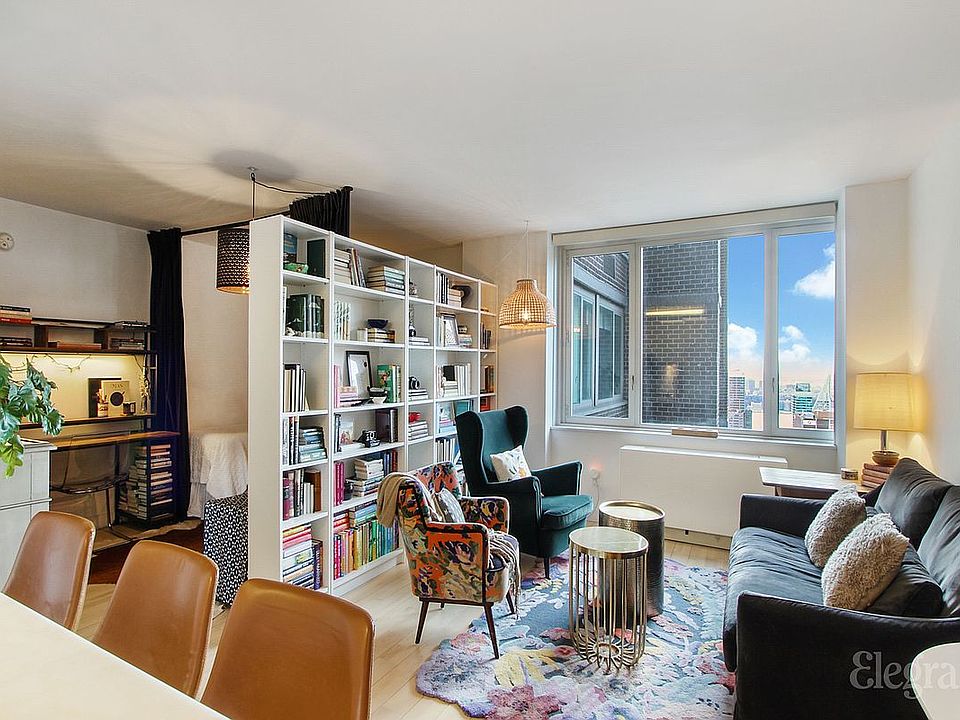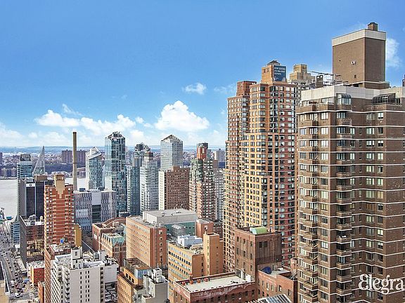 Perched high on the 49th floor, you experience stunning western exposures of Manhattan and the river directly from your living room. Light pours through throughout the day, but especially in the afternoons.