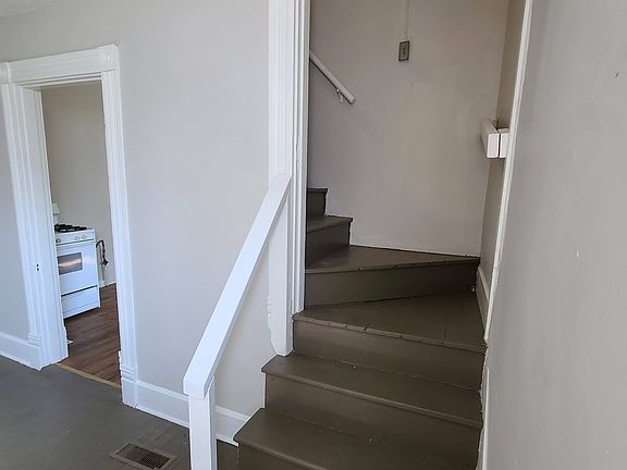 Well insulated, 3 bedroom 1 bath 2 story duplex apartment located at 322 w 8th St. 1195 sqft 2 bedrooms upstairs 1 bedroom downstairs. Large eat-in Kitchen, separate laundry room, entrance foyer, and Large Livingroom. The bedrooms are walk throughs, lots of closet space. Conveniently located near shopping, post office, library, ymca, parks, churches and restaurants. On-street parking.