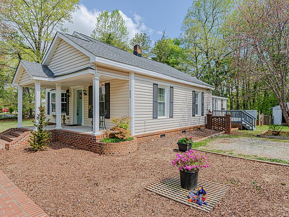 A Storybook Cottage with Space, Charm, and Convenience. This beautifully updated 3-bedroom, 1-bath cottage feels like a fairy tale come true. Set on a 1.23-acre corner lot just minutes from downtown Hillsborough—with no HOA—it blends classic charm with everyday convenience. Inside, the spacious living room is filled with natural light from a large bay window. Other features include LVP flooring throughout, beautiful kitchen cabinetry, quartz counter tops, tiled backsplash, a 5-burner gas stove, perfect for home cooking, while a cozy gas log fireplace in sitting area adds warmth and ambiance. Outside, enjoy a covered front porch and a spacious rear deck ideal for relaxing or entertaining. The lot offers a mix of opportunities with a large open front yard, along with clear level space and a wooded natural area in the back. Several outbuildings provide bonus space for storage, hobbies, or workshop use. Whether you're looking for a starter home or downsizing, this lovely cottage offers everything you need. With quick access to Occoneechee Mountain, Gold Park, the Riverwalk, and I-40/85, you'll enjoy the best of peaceful living with easy travel throughout the Triangle and Triad.