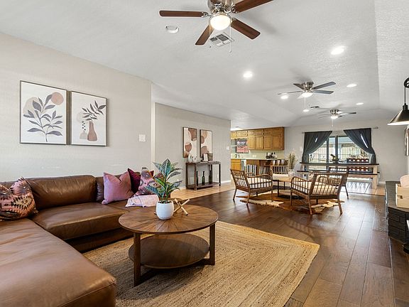 Welcome home to your Fredericksburg retreat just a mile to Main street with hot tub included! This spacious one-story ranch style home features 3 Beds and 3 Full Bathrooms plus game room with 2,411 sq ft and a beautifully landscaped backyard! The home has been updated with stainless steel appliances including refrigerator, microwave, dishwasher, and washer/dryer. The home can be leased fully stocked and furnished for 30+ days or 12+ month lease can be furnished or unfurnished. Each oversized bedroom includes 2 queen beds with private bathrooms in each room if you choose to take it furnished. 2 car attached garage included as well.