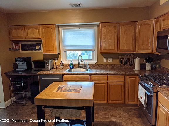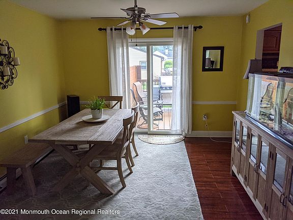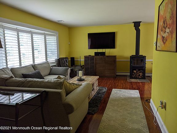 Here is your chance to live in a pristine Split Level home in Shark River Hills. The exterior of the home was freshly painted last Fall. This 3 bedrm 2 bath home has been meticulously maintained. It is hard not to notice the beautiful bamboo floors in the Living Rm and Dining Rm plus a Modern Wood Burning Stove to keep you cozy on those cold Winter nights. There are stainless Kitchen appliances. The Dining Rm has slider doors leading to back deck overlooking a private patio and fenced yard for entertaining. The lower level Family Rm has additional sliding doors that lead to the patio and spacious back yard. The full basement has a high ceiling and is great for storage or multi use. There is 3 zone HWBB heat and Central Air. Blocks to the river and minutes to the Beach.