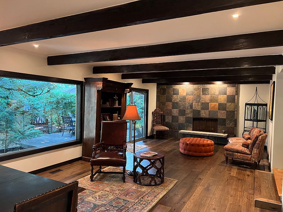 Old World charm and elegance, this 4bd 3ba home located in the heart of First Hill abounds with warm tones, soft lighting, wood beams intermixed with dramatic stone. Spacious rooms throughout the remodeled interior with lots of light and surrounded by mature trees for ultimate privacy. Peacefully situated at the end of a quiet street, this home is absolutely serene with no traffic and wonderful established neighbors. A fantastic home in which to raise a family, walk your dog through the trails, and soak in everything Mercer Island has to offer. Lush verdant landscaping with working stream attracts a variety of wildlife. Zero maintenance for tenants, will be cared for by professionals. This home comes furnished or unfurnished should you choose. It has central heat and air conditioning for those warm summers and a mini-split unit in the large master bedroom. It has been meticulously cared for and virtually all appliances are brand new. Finished basement with exercise equipment, can be used as additional bedrooms, playroom or rec room. First Hill has become one of the most popular neighborhoods due to its walkable streets, proximity to the Mercerdale hillside trail system, minutes to downtown Mercer Island and mostly for its close community, on display during the yearly First Hill Park Potluck. Conveniently located, Mercer Island is a choice community to live for those working in Seattle, Bellevue, Redmond, and surrounding areas. Commuting is a breeze with quick and easy access to major freeways I-90, 1-5 and 405. Tenant pays all utilities; water, sewer, garbage, electric and gas, wifi, cable/internet. Credit check with 740+ score required, no reusable tenant screenings. First months' rent and deposit to move in. Renter responsible for all utilities. No smoking, pets allowed. 740+ credit rating required.