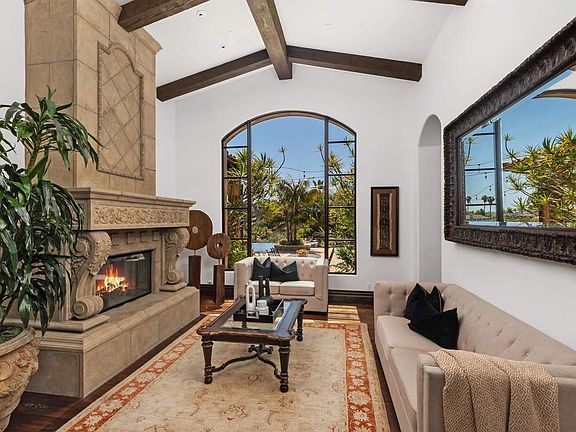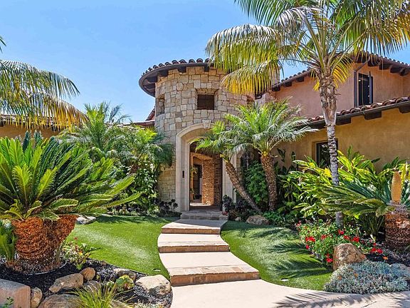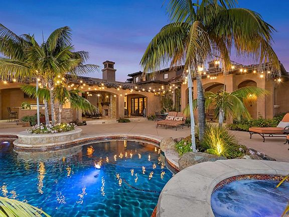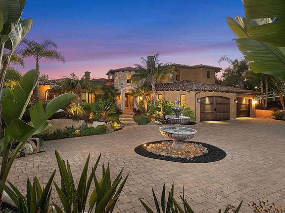 This exquisite listing truly is the epitome of luxury living! Set atop a serene hill on a spacious 1.16-acre lot, the Belle of Olivenhain offers an unparalleled blend of elegance and functionality. With 5 bedrooms, 5.5 bathrooms, and an expansive 5833 square feet of living space, this home is designed to accommodate every aspect of refined living. The west-facing yard offers a beautiful infinity edge pool and spa. Also great for entertaining is a large BBQ area complemented by a double-sided fireplace where you can enjoy the spectacular sunsets. Inside, the home boasts impeccable craftsmanship and meticulous attention to detail throughout. The first floor features the primary bedroom with dual walk-in closets, as well as a convenient guest bedroom and dedicated office. The chef's kitchen is a culinary masterpiece, equipped with top-of-the-line appliances, including three ovens and a wine fridge, along with a 36” refrigerator separate and 36” freezer, along with refrigerator drawers, and ice maker. A spacious island and walk-in pantry ensure ample space for meal preparation and storage. There is also an additional room ideal for hosting gatherings. With a built-in bar and plenty of seating, the 9-foot mahogany sliders lead to the exterior which seamlessly blends the indoor and outdoor living. Upstairs, three additional bedrooms offer comfort and privacy, with one featuring its own en suite bath and the other two sharing a Jack and Jill bath complete with a double vanity and luxurious wet room. With a 4-car garage and tons of storage, owned solar panels, home audio visual system, streamline home lighting system, whole home water softener, and centrally monitored security system this home has it all. Zoned for Olivenhain Pioneer Elementary and in the San Dieguito Union High School District, Bella Collina offers the perfect combination of luxury, convenience, and lifestyle. Don't miss your opportunity to experience the unparalleled beauty and elegance of this home.