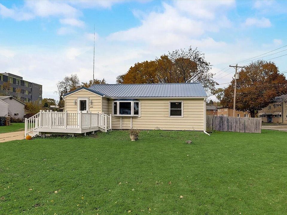 This conveniently located ranch home will catch your eye with its brand new metal roof and front and back decks! You can't beat the big fenced in yard and location on a quiet dead end street. The home is an open concept 2 bedroom ranch with a large bay window overlooking the front yard which offers lots of green space on a corner lot. Brand new central air unit and water softener are included. The driveway offers extra paving and parking for several vehicles. The two car garage is extra deep and has lots of cabinets for storage, as well as a garden shed behind it. Get to any part of Madison easily from this central location! This one is perfect for pet owners and anyone who would rather own than rent!