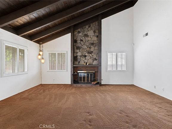 Step inside to an inviting living room with vaulted ceilings, exposed wood beams, and a striking fireplace that anchors the space with warmth and character. A formal dining room and a den with a built-in wet bar create the perfect balance between everyday comfort and effortless entertaining.