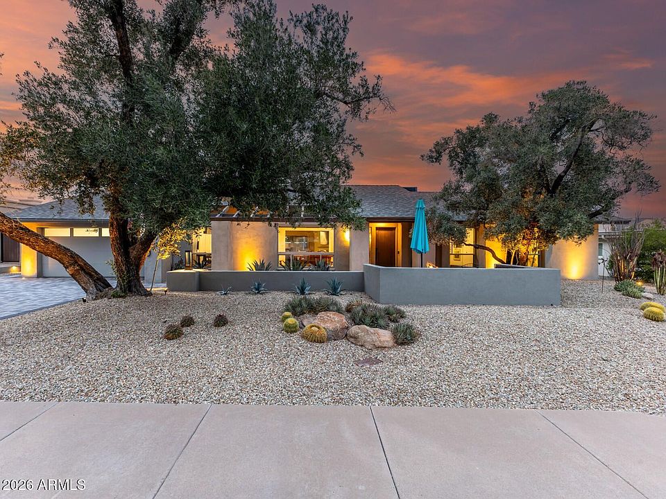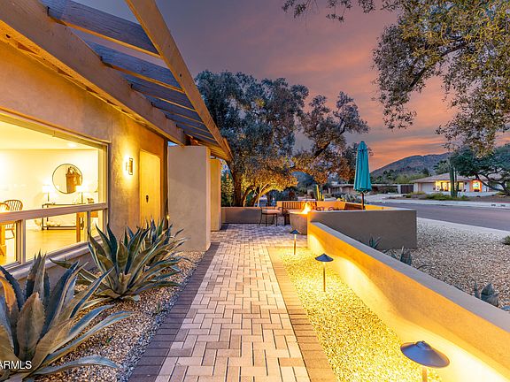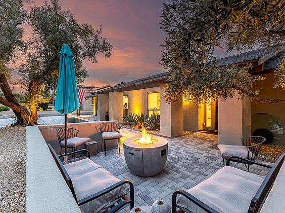This 4-bedroom plus office, 2 bath home has been thoughtfully updated (completed in 2024). Observe the proximity and views of the Phoenix Mountain New paver driveway with an extra parking space starts your tour. The front courtyard allows for sunset views with neighbors and friends. Chef's kitchen with Wolf/Sub-Zero/Cove Appliances, beverage center and a large eat-at island. The Primary Bedroom has dual access to the covered patio and pool, updated bath and closet., built-in cabinetry includes a TV, fireplace and more storage. 3 generous bedrooms, each with sizable closets. The backyard features a completely renovated saltwater pool with heat pump heater (2021), expansive travertine covered patio, custom 12' x 4' custom fire pit, grill area & putting green.