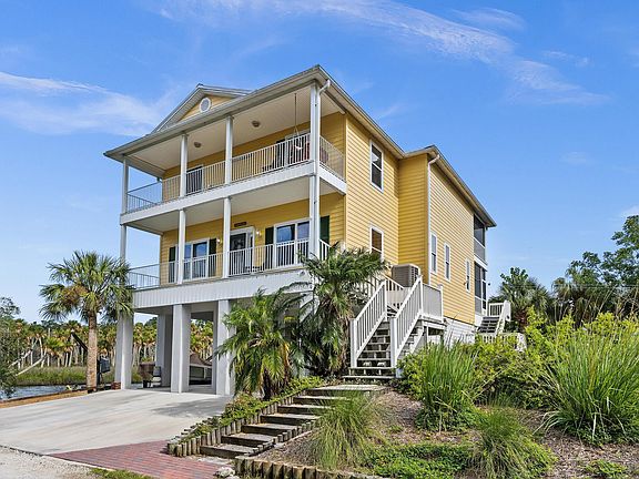 PARIDISE awaits!! PRIVATE and SECLUDED!! If you have been looking for a GORGEOUS home with GULF ACCESS and AMAZING VIEWS your search is over! This home has 3 Bedrooms PLUS OFFICE 3 bathrooms with stunning views from every room in the house. The home features Crown Molding, Glass French Doors, Fireplace, Central Vac, Built-in Cabinets, Plantation style Shutters, OAK Hardwood Floors, Jacuzzi, Widows Walk and MUCH MUCH MORE!!! Watch the sunsets from the wrap around SCREEN BALCONY or the SCREEN LANAI on the ground floor. PERFECT for ETERTAINING or just watching the MANATEES or DOLPHINS swim the canal. This custom built stilt home was built to last with 28 columns bored 25-35ft down into the lime rock, the roof is a 26 gauge GALVALUME Standing Seam Metal Roof, Energy Efficient Double Insulated windows, ICYNENE Spray Foam Insulation, 16 Seer AC, New Water Softener, New floating BOAT DOCK, also includes a BOAT LIFT with Electric Davits 5,000lbs each, Covered Parking Work Shed, Beautiful yard with a ton of vibrant TROPICAL foliage. (Plenty of room to add a pool.)