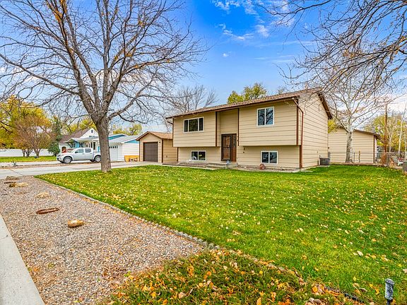 This remodeled home is move-in ready and centrally located in desirable west end location close to schools, shopping and Centennial dog park. Home has newer windows and the roof, exterior paint and gutters are all new as of 2025. Underground sprinklers and well provides water for fenced yard, extra parking in back plus RV or boat parking area inside the fence off the alley. Single car garage with a handy separate storage/workshop area to the rear, 30-amp exterior outlet for an RV PLUS an additional oversized (approx 25x 30) heated and insulated 2 car garage off alley with lofted storage!! Covered back deck off kitchen with a shaded dog run tucked underneath. Don't miss the little hidden storage room in lower level for guns, jewels, canning jars or all your treasures. Neat as a pin and ready for its next owner to enjoy!!!