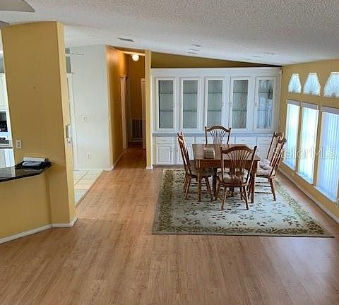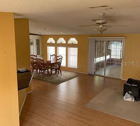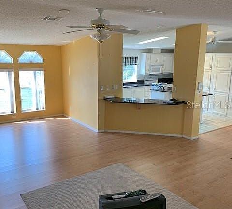 If you're looking for a part time or year round home with lots of space and a private feel, this is the place for you. This home backs up to a large field with no one behind you. Inside, you will find high ceilings with cabinets galore in the kitchen. The kitchen is open with a peninsula and granite counter tops. Bar looking into the living room. Master has an office attached with French doors to the living area. 3 very nice size bedrooms with master en-suite. This is a 55+ community on Lake Griffin with access to the Harris Chain of Lakes.